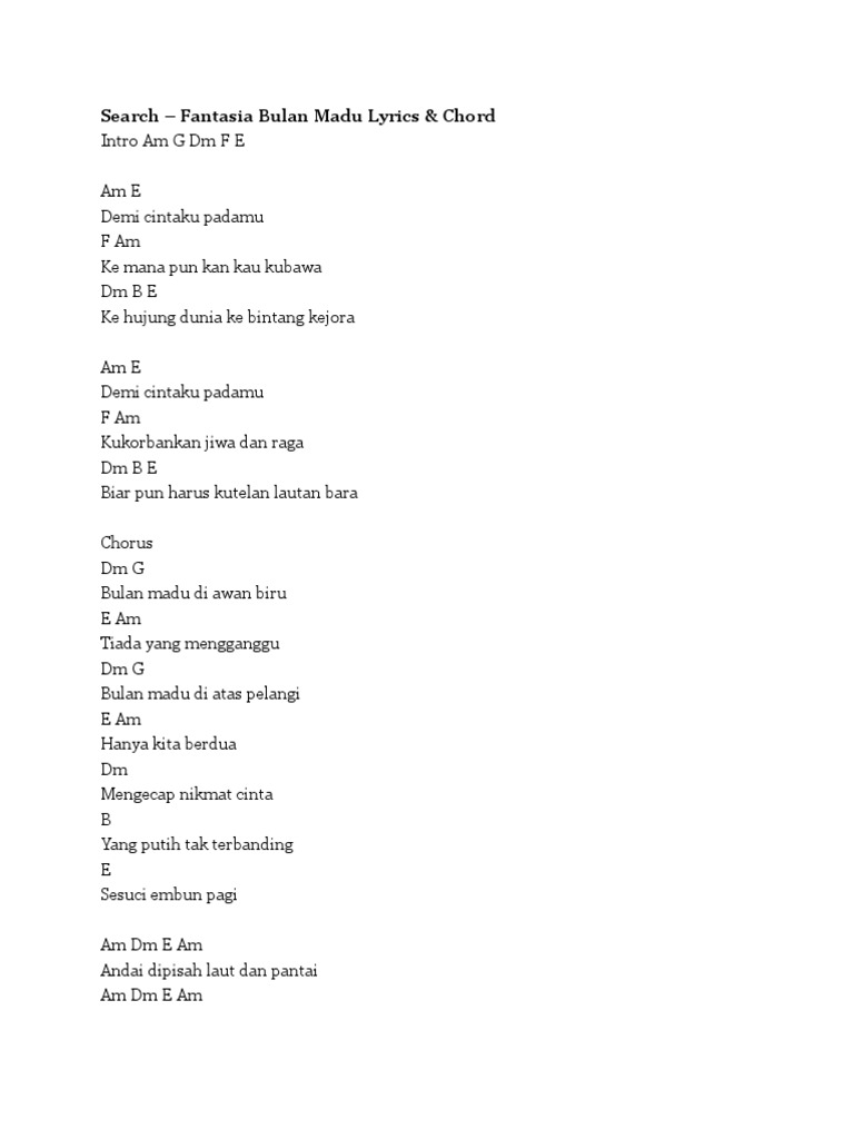 Fantasia Bulan Madu Lyrics By Search Demi Cintaku Padamu Ke