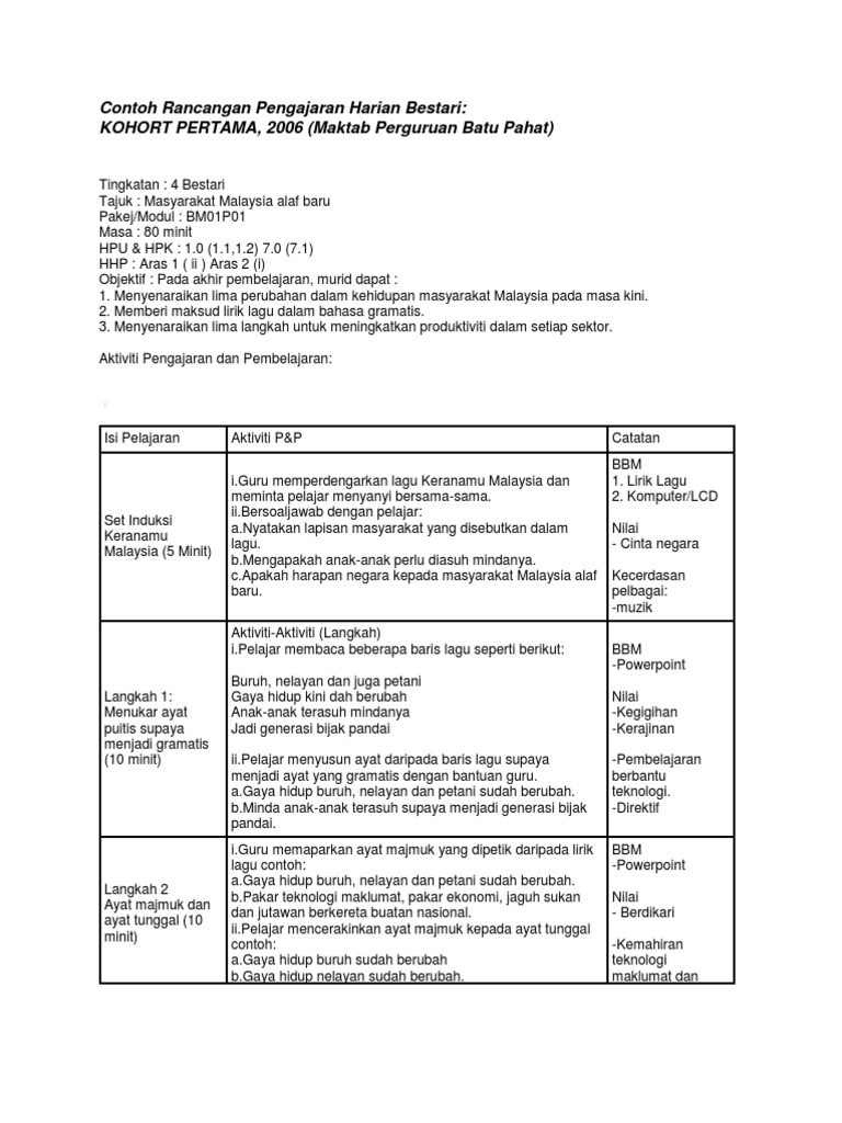 Contoh Rancangan Pengajaran Harian Bestari Pdf